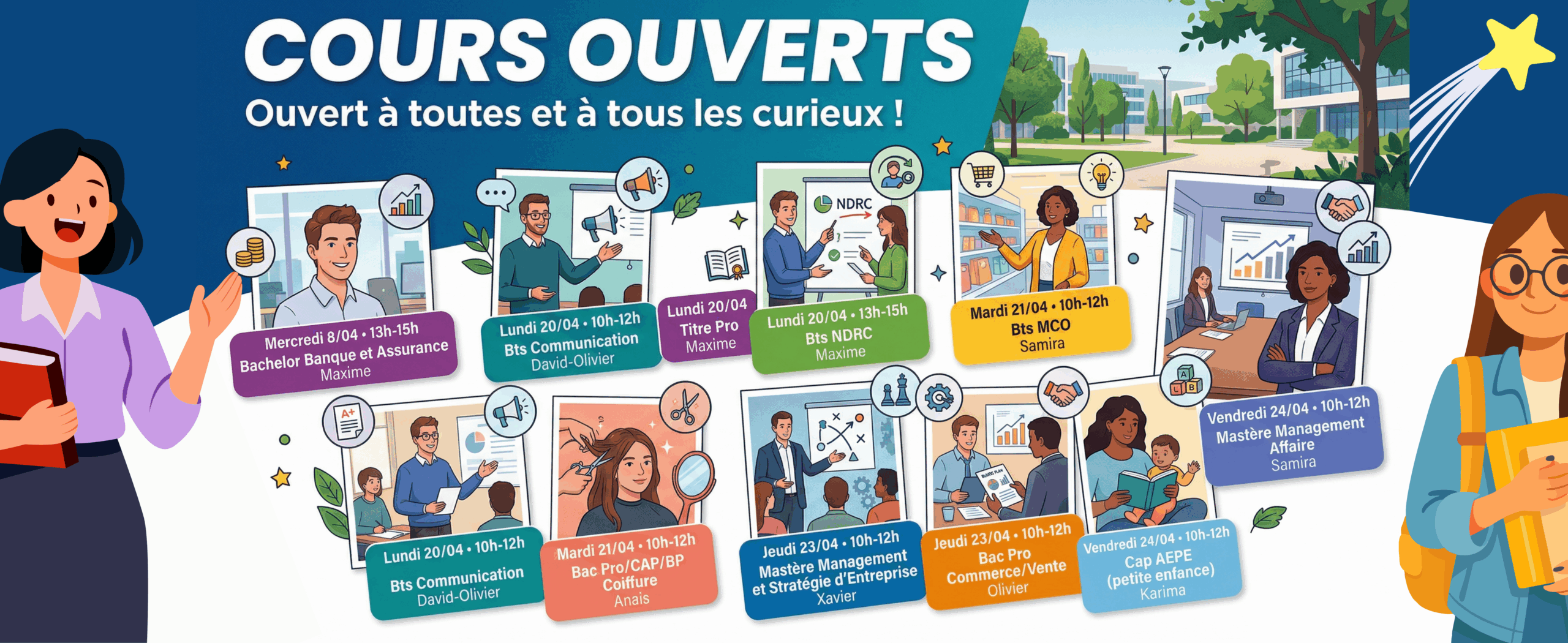 Nous avons pour objectif de former les leaders de demain grâce à des intervenants professionnels, mais aussi en s’entourant d’un réseau d’entreprises partenaires afin de lancer les étudiants dans la vie active et construire leur carrière professionnelle.