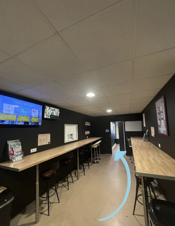 Entrez par la porte vitrée "La Fabrik et Tête d'Affiche".