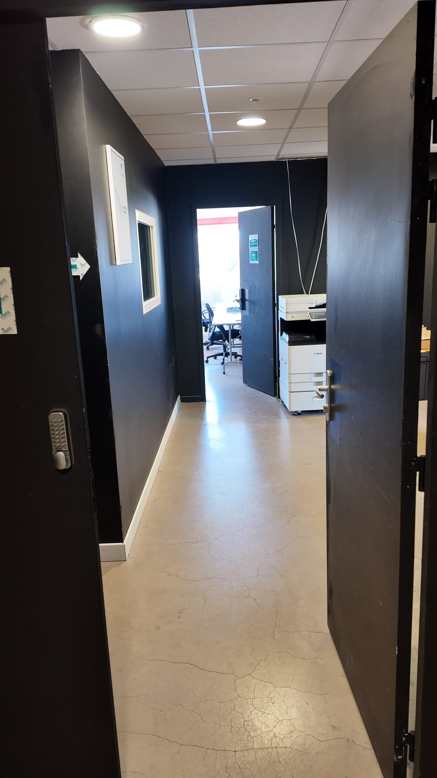 Traversez l'espace détente / cafétéria vers le fond.